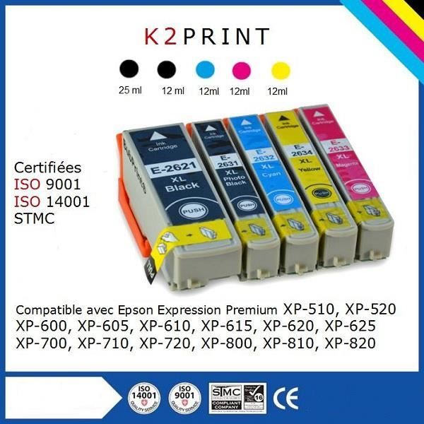 22598 Recherche de jeux. Pack EPSON T 0551-T 0554 T 0555 Set. 10 cartouches dencres compatibles avec les Epson 26XL ref T2636 T2621 T2631 T2632 T2633 T2634 noire Nph magenta cyan jaune avec puces pour imprimantes Epson Expression Premium XP 510 XP 520 XP 600 XP 605 XP 610 XP 615 XP 620 XP 625 XP 700 XP 710 X.